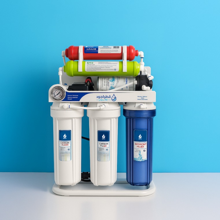 - فلاتر مياه ٧ مراحل بتصميم موفّر للمساحة يناسب الأماكن الضيقة.